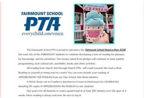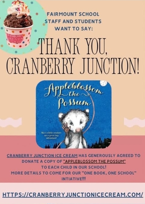 Cranberry Junction Ice Cream in Hackensack, NJ, partnered with Fairmount Elementary School for the 2026 Read-a-thon, donating 515 copies of Apple Blossom the Possum-one for every student. This inspiring initiative sparks imagination, encourages a lifelong love of reading, and brings the school and wider community together. Cranberry Junction continues its year-round commitment to community.