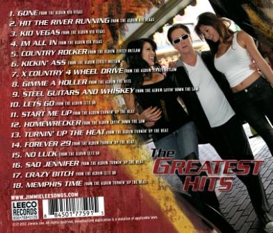 Country Rock Star and Poker-Rocker, Jimmie Lee-The Jersey Outlaw, releases his Greatest Hits Album! This CD has got a slew of 18 of Jimmies best songs, that include chart toppers, Gone, Kid Vegas, Im All In, Hit The River Running, Country Rocker, Lets Go, Gimme A Holler and more!